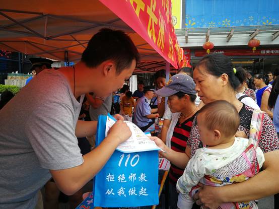 今年,我市公安机关开展了名为“大清查、大追捕、大收戒、大返赃、大宣传”的“五大战役”行动,8月26日,我区防范办联合区公安分局开展“大返赃”行动的时机,趁机开展反邪教宣传活动,向群众普及反邪教常识。