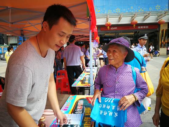 长安义工向群众宣传反邪教知识
