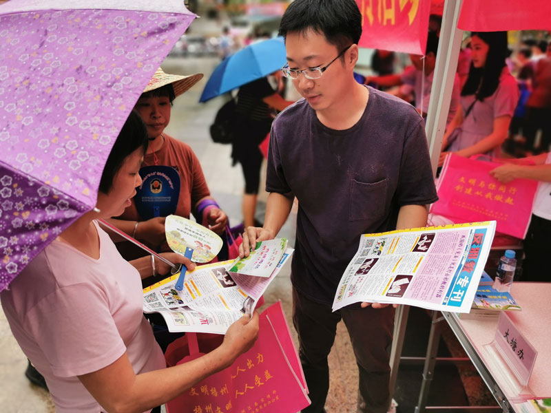 反邪教志愿者派发反邪教宣传资料