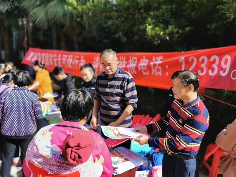 活动现场,工作人员在小区广场通过悬挂宣传标语、发放宣传资料和印有宣传标语的环保袋、发放小礼物等多种形式,向过往群众宣传国家安全、《反间谍法》《反恐怖主义法》等知识,号召广大居民积极与一切危害国家安全的行为作斗争,一旦发现危害国家安全的行为、涉黑涉恶线索、邪教和吸毒人员可以通过拨打相应的举报受理电话进行举报,确保社会和谐、安全、稳定。