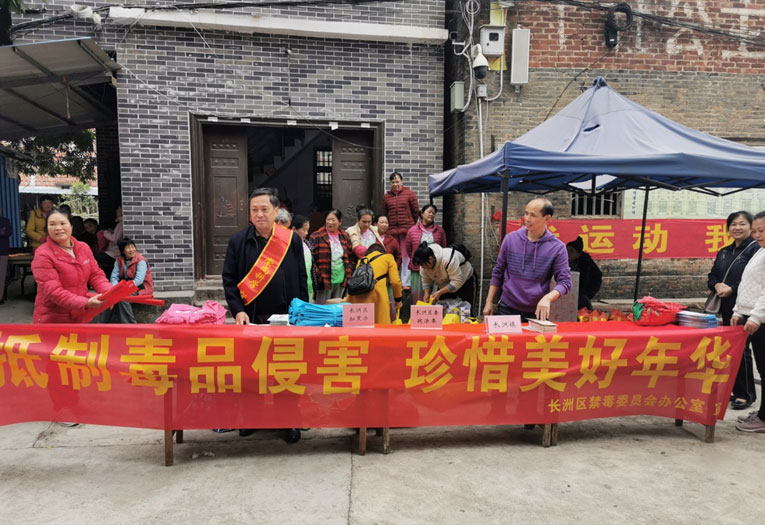 2020年1月11日,长洲区宣传部在长洲镇泗洲村举行了一场以“文化进万家--我们的中国梦”为主题的文艺表演,长洲区委政法委、区禁毒办、区扫黑办等部门来到了文艺表演现场,开展了一场禁毒预防教育宣传活动。