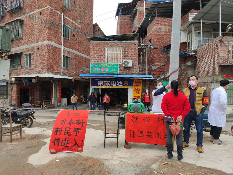 志愿者在街道、村口宣传防控知识