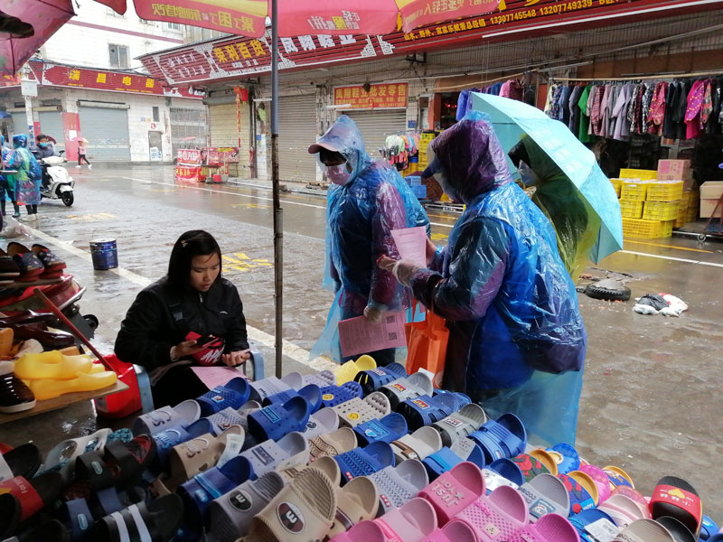 志愿者冒雨到两广市场开展人员摸排工作