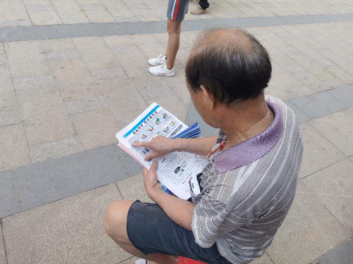 志愿者向居民群众派发反邪教宣传资料