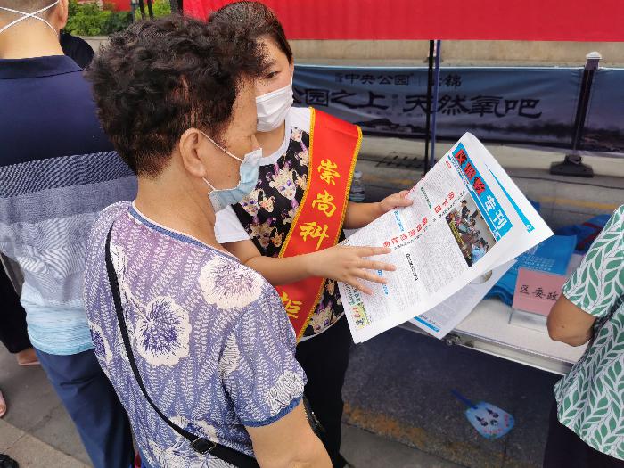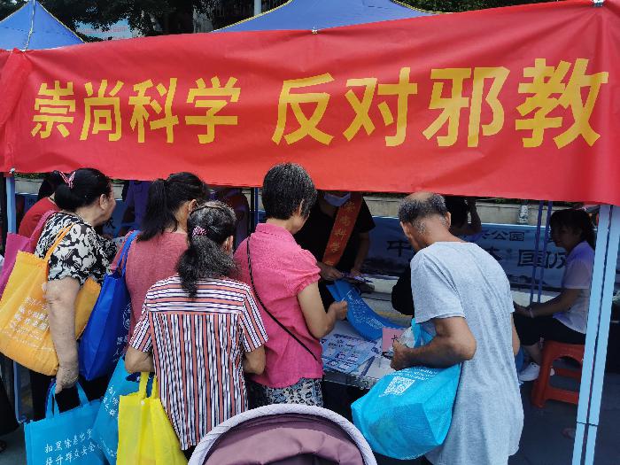 (反邪教志愿者向群众讲解如何识别邪教的基本知识)