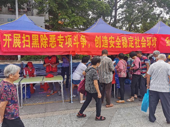 此次活动还围绕扫黑除恶专项斗争、反邪教、提升群众安全感等平安建设工作开展宣传,工作人员、志愿者们向过往群众发放扫黑除恶、反邪教宣传材料,并现场讲解有关黑恶势力犯罪和邪教组织的危害,引导群众勇于发现并举报身边的涉黑涉恶线索,相信科学铲除邪教。
