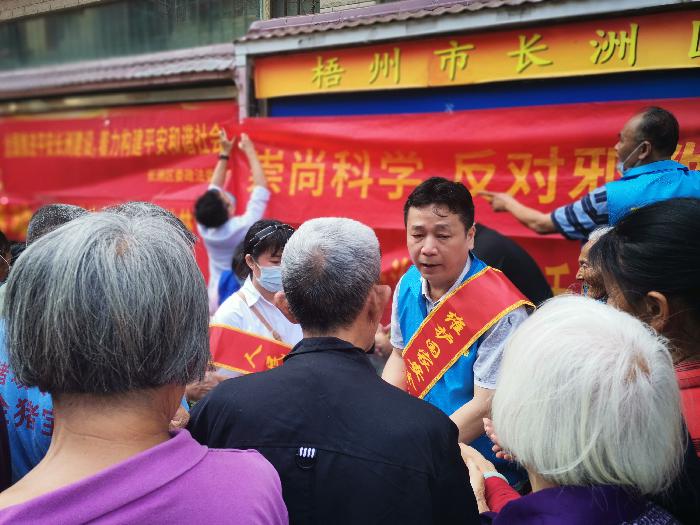 活动中,长洲“蓝马甲”网格员和工作人员向居民群众发放国家安全知识宣传资料,耐心解答了群众提出的问题,广泛宣传国家安全等法律法规,呼吁广大群众关心国家安全、维护国家安全,为贯彻落实总体国家安全观贡献自己的一份力量。