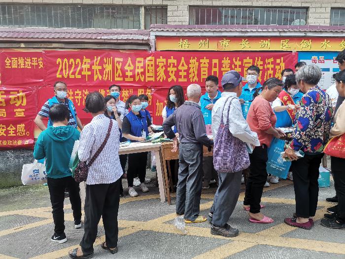 4月13日,在第七个“4·15”全民国家安全教育日来临之际,为深入开展全民国家安全教育日宣传活动,进一步增强人民群众国家安全意识,认真履行维护国家安全义务,防范和制止危害国家安全的行为,长洲区委政法委组织区司法局、区禁毒办、倒水镇综治办等单位在倒水镇政府门口开展全民国家安全教育日普法宣传活动。