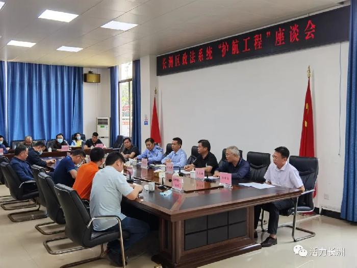 揭牌仪式后,参加活动的全体人员还一同在长洲区政法系统“护航工程”不锈钢园区服务站开展座谈会。