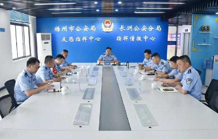 ▲长洲区副区长、公安分局党委书记、局长徐海毅主持召开会议。